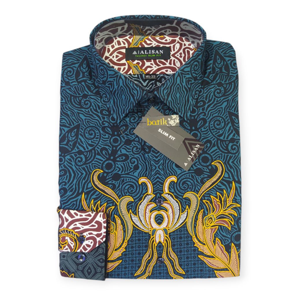 Kemeja ALISAN Batik Lengan Panjang Slimfit Terbaru Size 14½-33(S) - 16-34(XL) Panjang Pria Dewasa