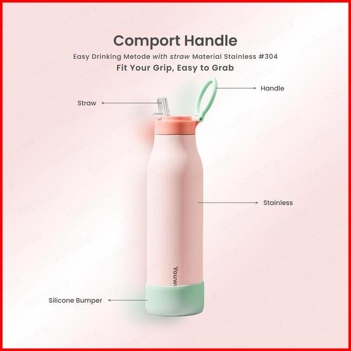Terlaris Youware- Zello Stainless Steel Tumbler 700 Ml Tahan Panas Dingin Vacuum Cocok Untuk Sport Tumbler Dengan Warna