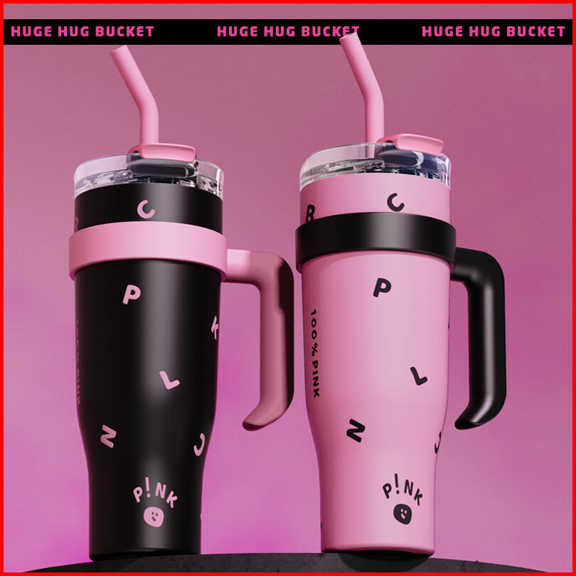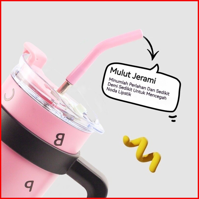 1200ml Tumbler Ice Stainless Kapasitas Besar-tumbler Pink Dengan Sedotan-thermos Anti Tumpah-original