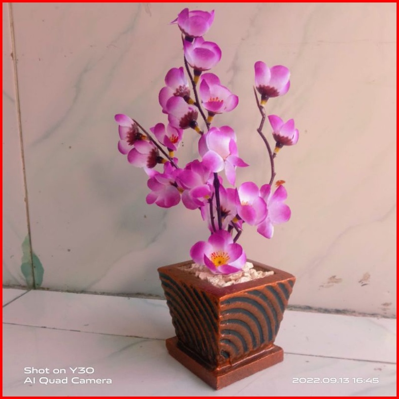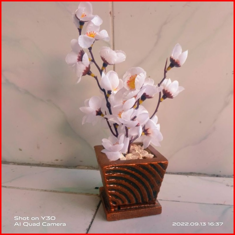 Lengkap Vas Bebatuan Sakura Rimbun Artificial Dekorasi Tinggi 25cm 1kg 6pcs
