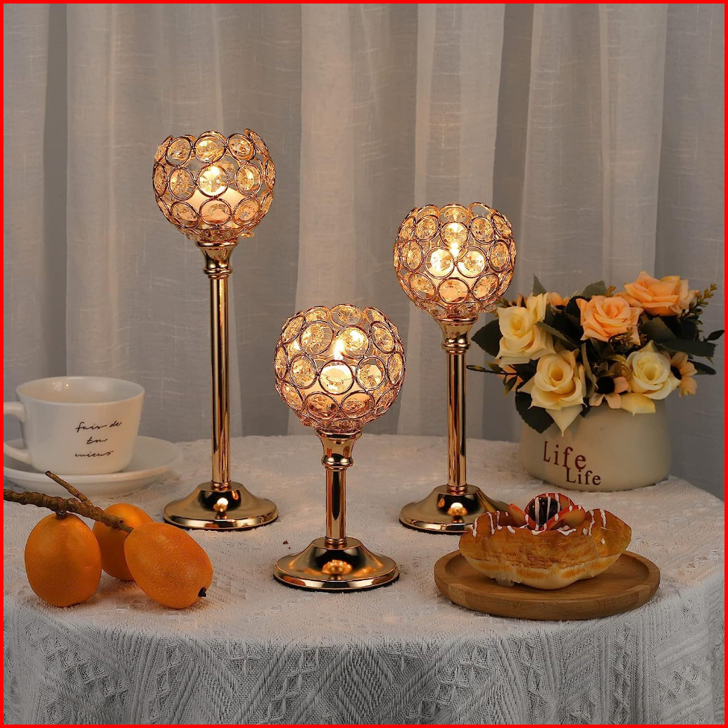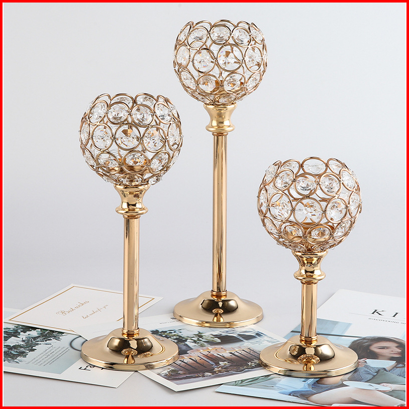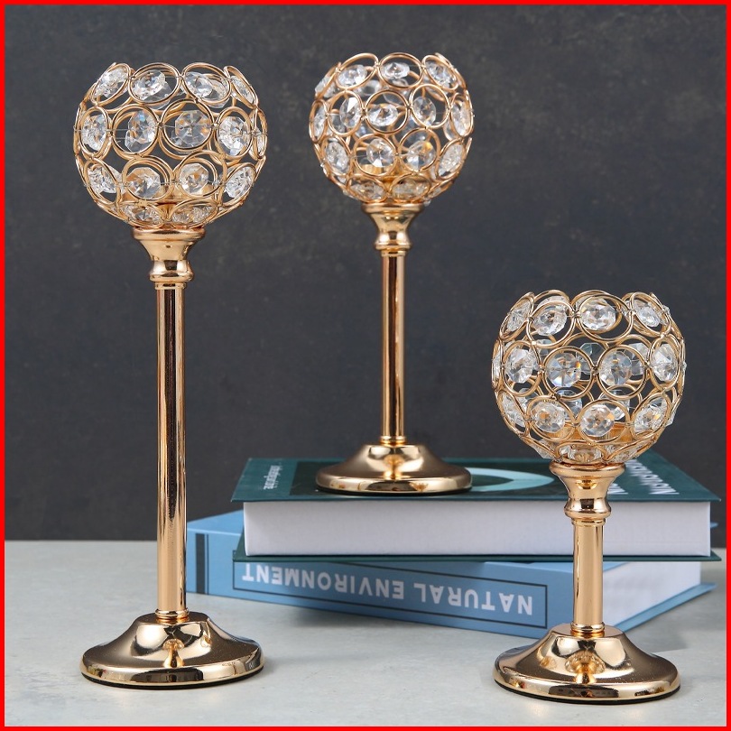 Candelabra Ornamen Dekorasi Paket Individu 3 Height Golden Crystal Candle Holder Dekorasi Rumah Cahaya Lilin Makan Alat