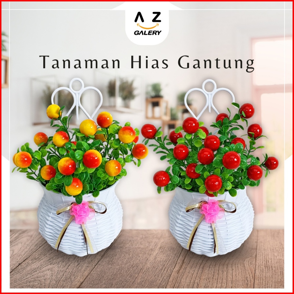 Tanaman Buah Plastik Ornamen Pot Gantung Hiasan Dekorasi Pajangan Dinding Rumah Flower Pbp36