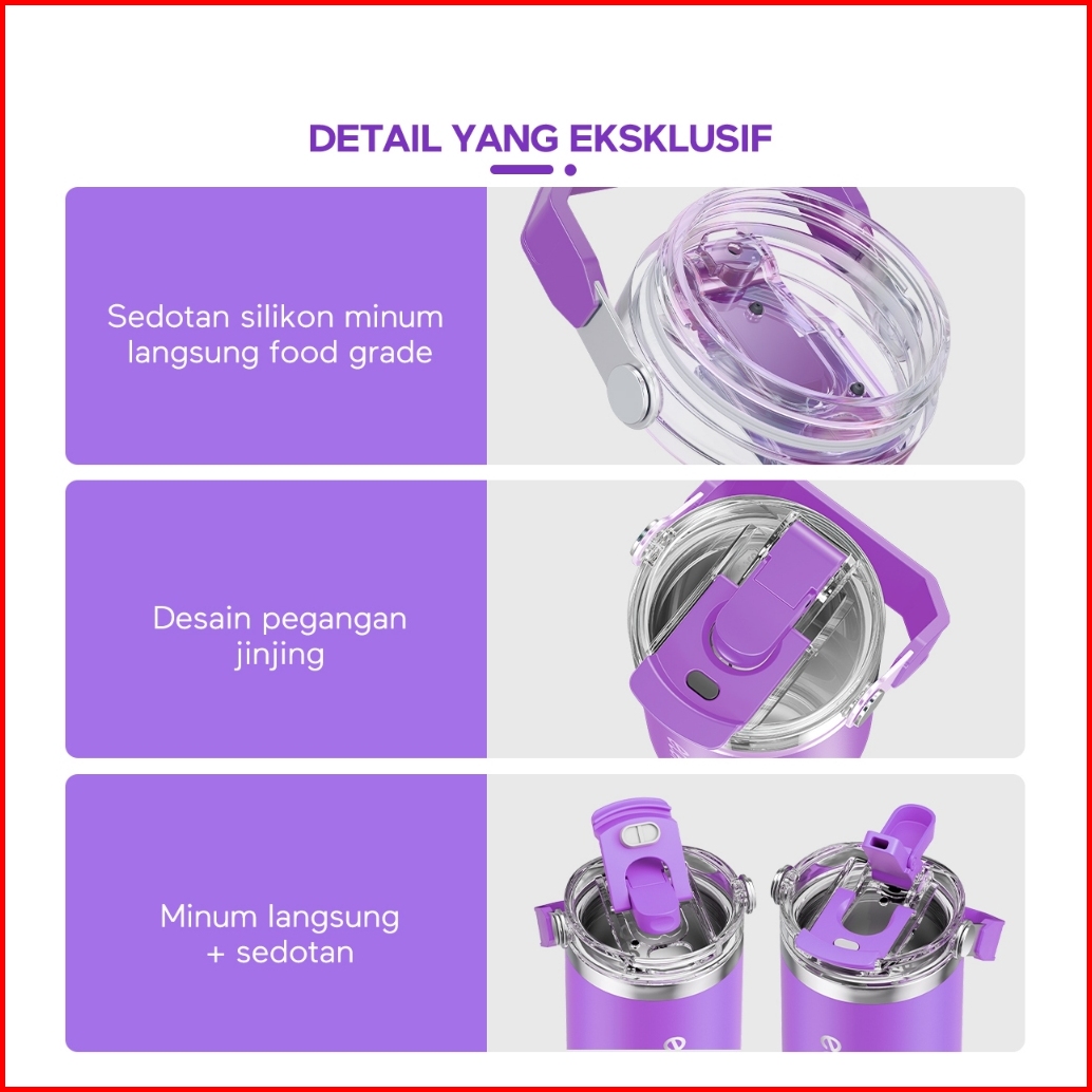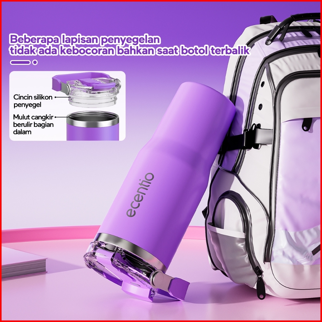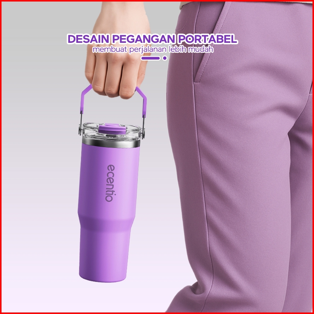 Ecentio Tumbler Stainless Vacuum 900ml Ungu Briu Pink Beige Portable Thermos Botol Minum Besar