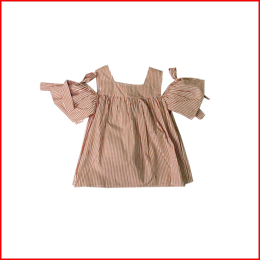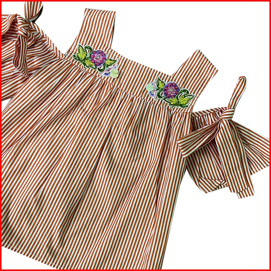 Blouse Cut Off Shoulder Anak Perempuan Motif Garis-garis
