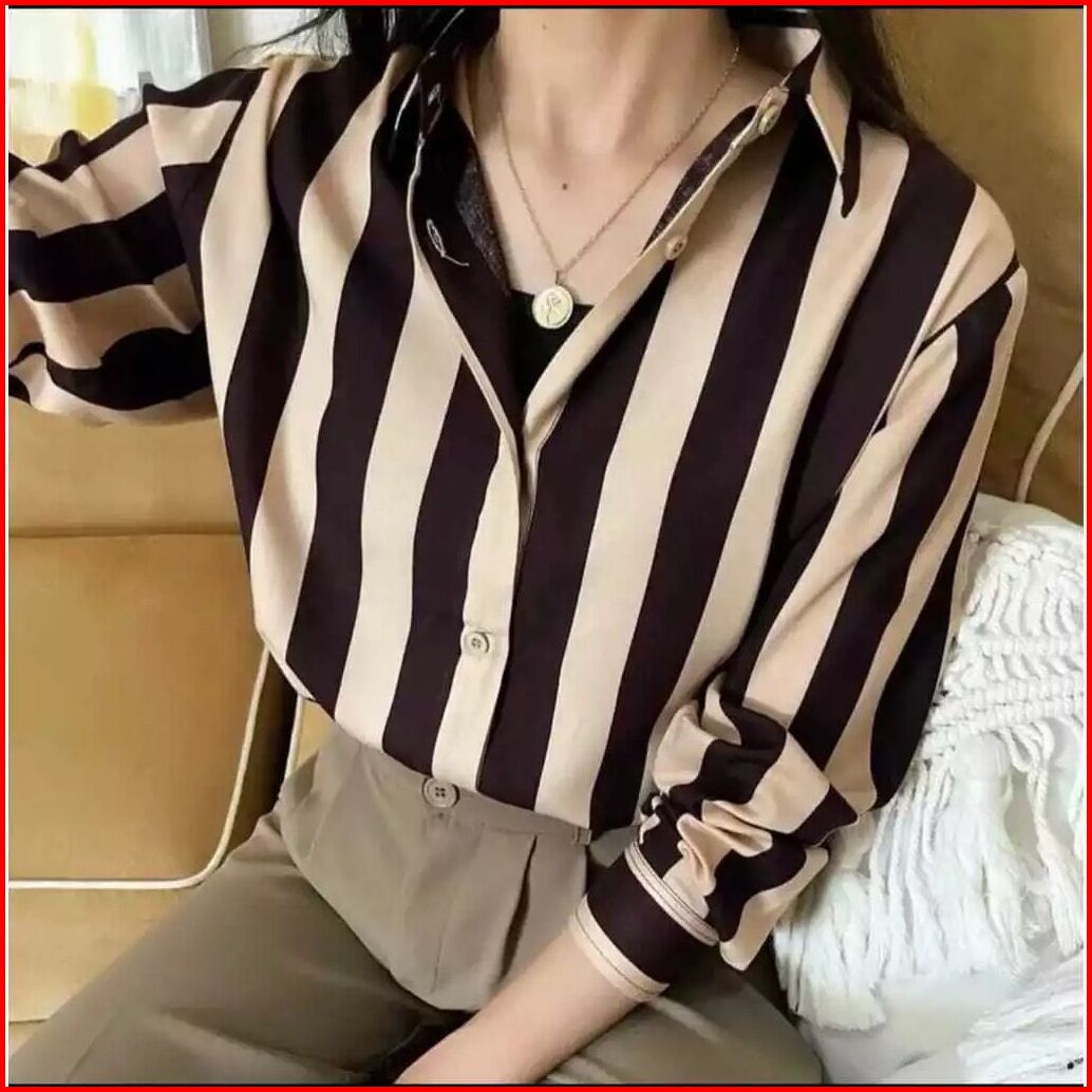 Promo Kemeja Wanita Trend Atasan Wanita Terbaru Kemeja Salur Kemeja Lengan Panjang Kemeja Outfit