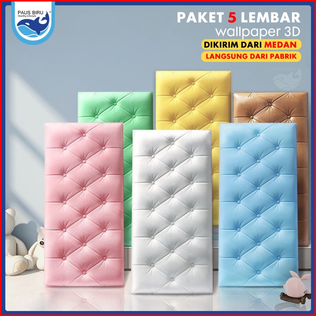 Paus Biru - Paket 5 Lembar Wallpaper 3d Foam Kedap Suara Tahan Air Headboard Bed Wallfoam Empuk Wallpaper Headboard