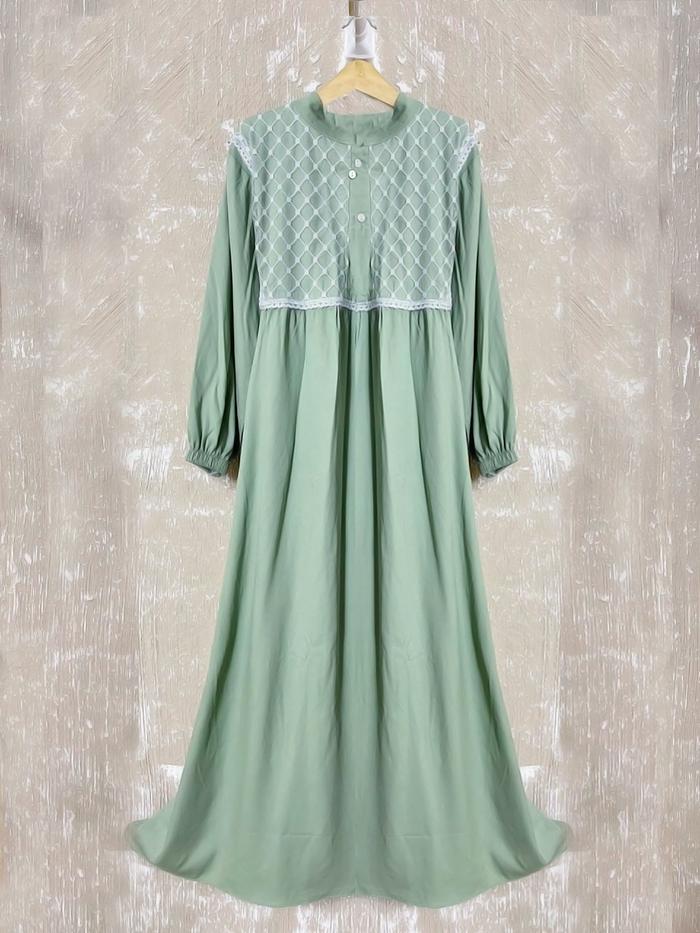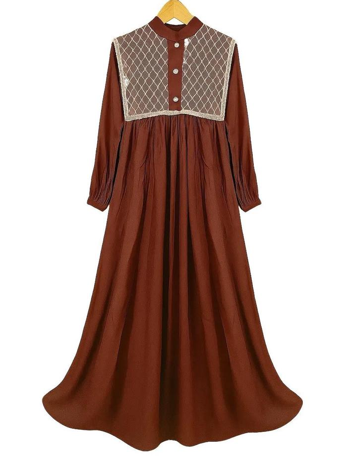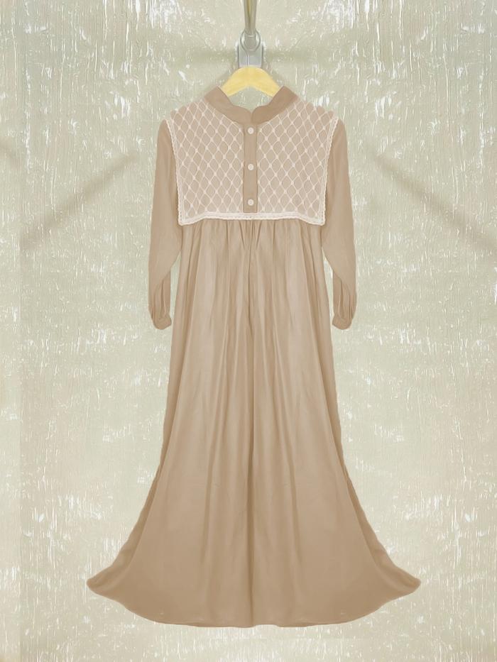(Langsung Kirim )Gamis Lebaran Anak Perempuan Rayon Mix Brukat Premium Dress Muslim - Burgundy Ungu, 2