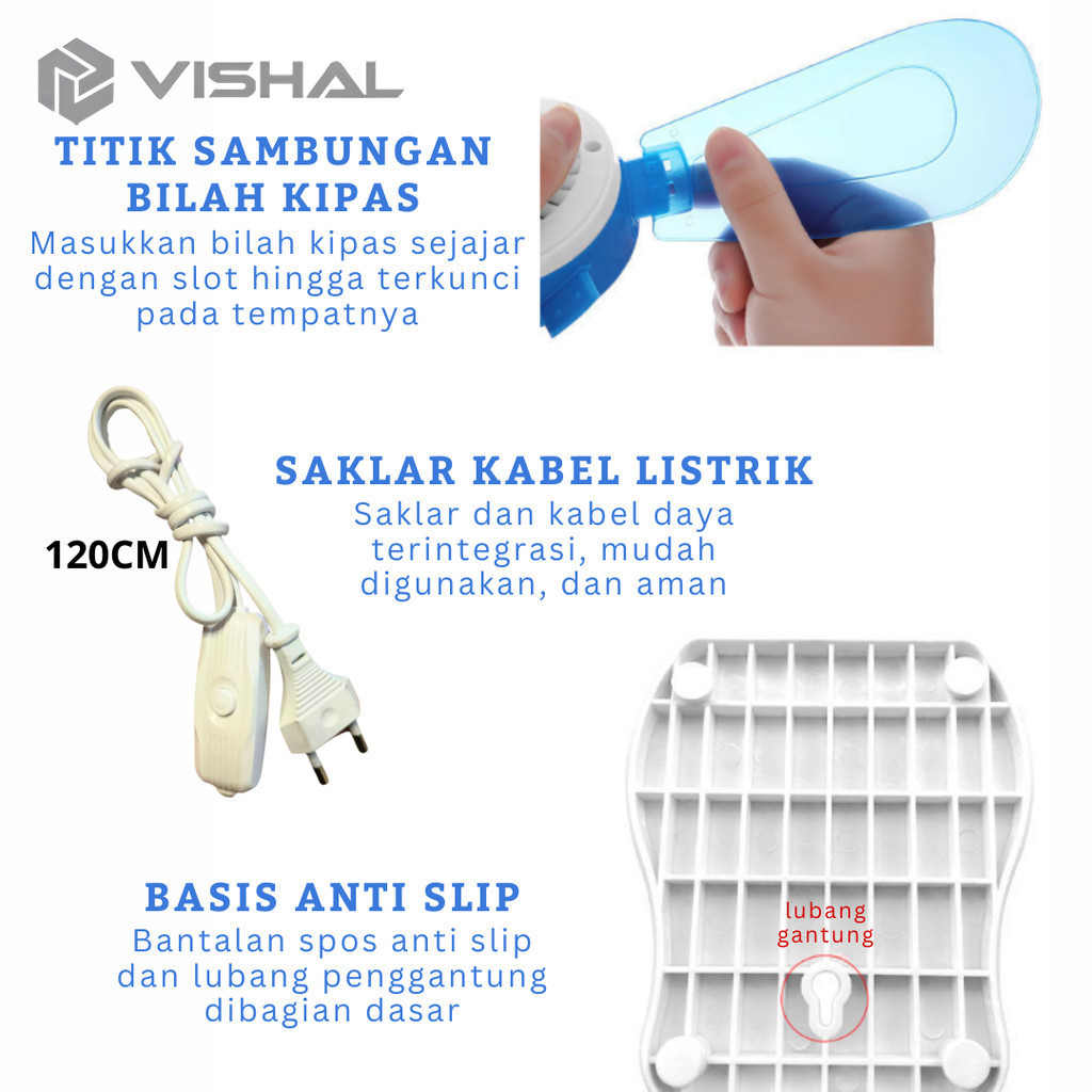 VISHAL Kipas Clip Fan 220V Kipas Angin Multifungsi 3in1/ Dijepit, Digantung atau Diletakkan, Angin Sejuk dan Stabil