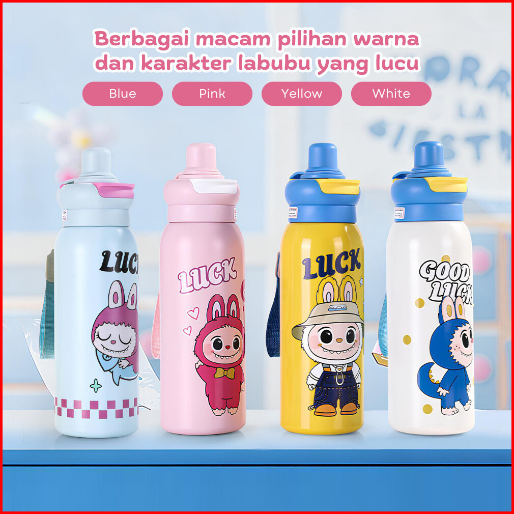 Tumbler 600ml Stainless Motif Labubu Anti Tumpah Botol Minum Karakter Food Grade Tahan Suhu Anti Bocor Cocok Untuk Sekol