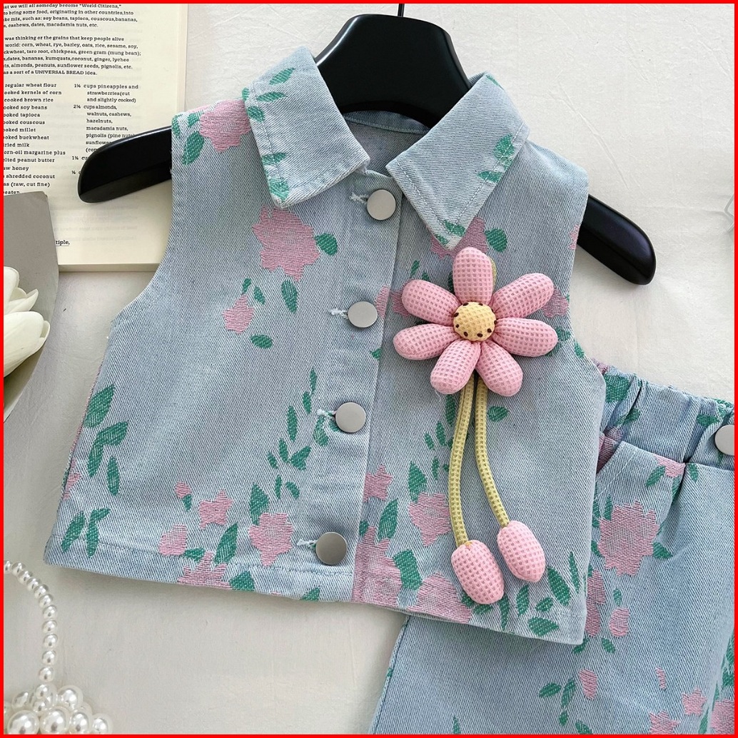 Babydoraa St-112 Setelan Rokcel Jeans Anak Perempuan Motif Bunga Usia 1-10tahun