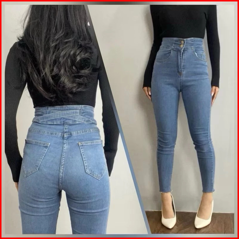 Celana Jeans Highwaist Skinny Wanita Hw Pensil Silang Wanita Celana Jeans Gaya Korea Jeans Premium