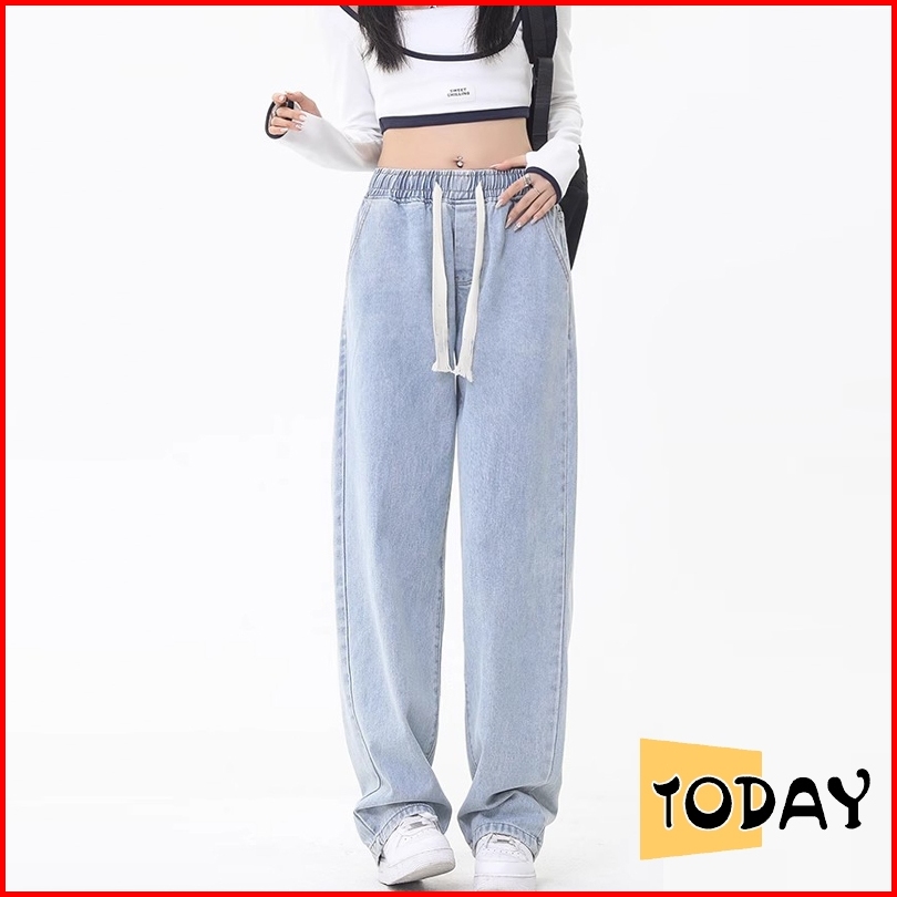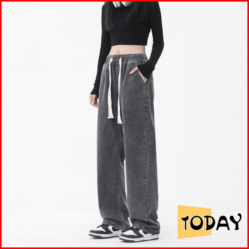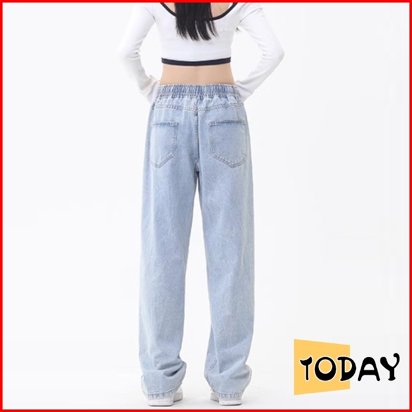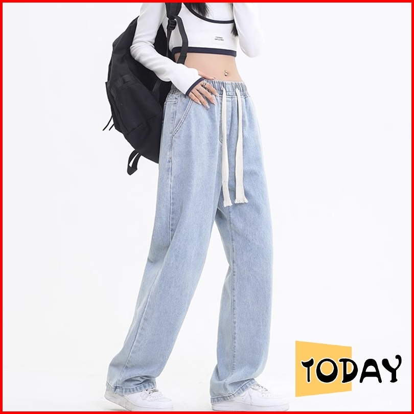 Vv - Celana Jeans Wanita Korean Style Celana Jeans Pinggang Karet Celana Oversize Wanita Baggy Pants Celana Kulot Jeans