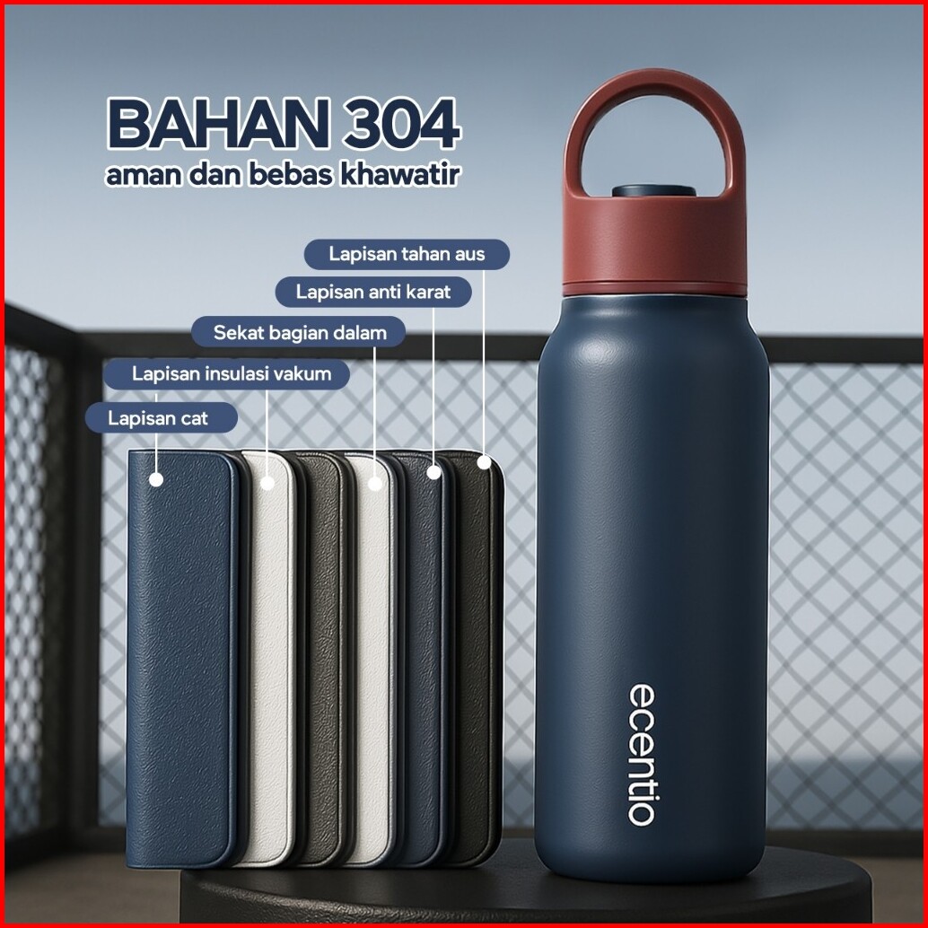Ecentio Tumbler Minum Stainless 650ml Botol Minum Tahan Panas Atau Dingin 78 Jam