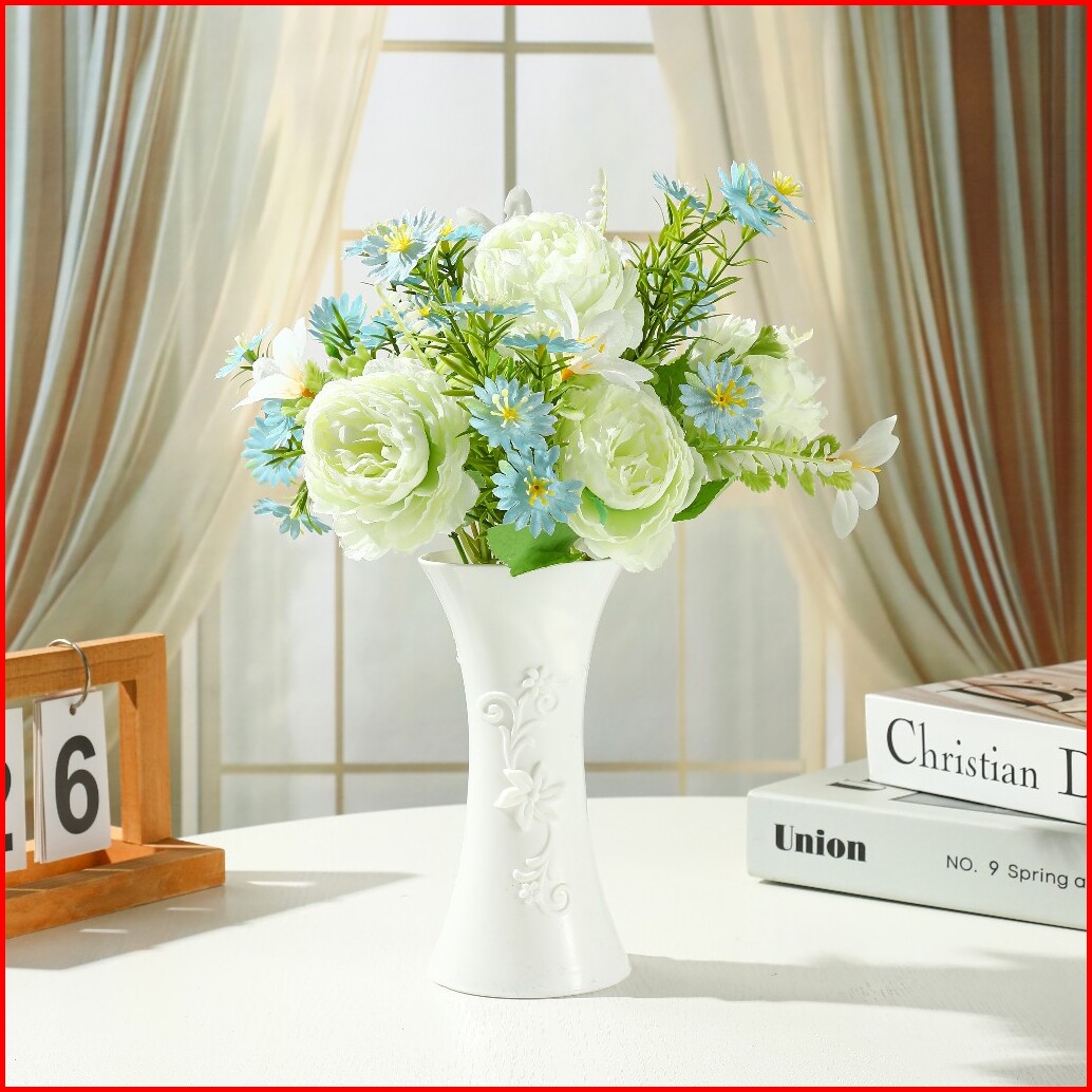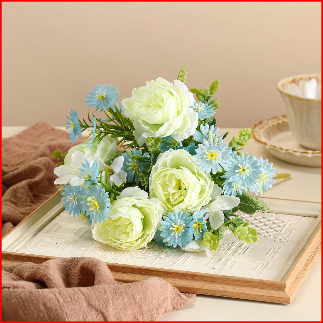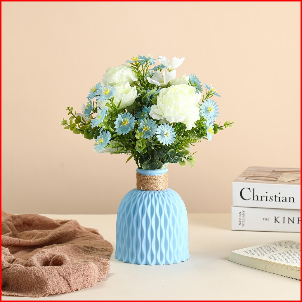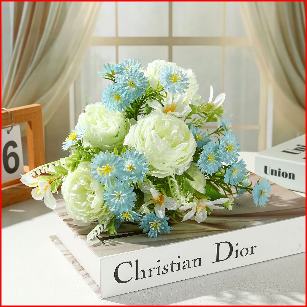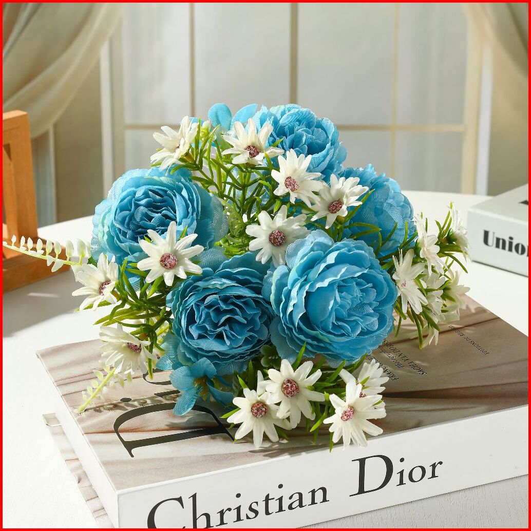 Set Komplit Bunga Peony Sintetis Warna Biru Dan Vase Hiasan Elegan Untuk Pernikahan Rumah Kantor