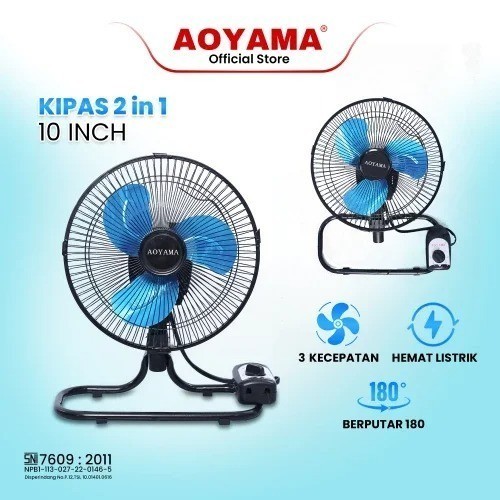 Kipas Angin Tornado Besi 2in1 10Inch Stand Fan Desk Fan Wall Fan-1218 dan 2in1 AOYAMA NZY 2