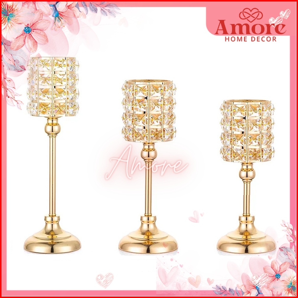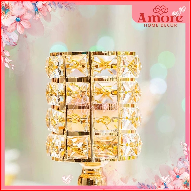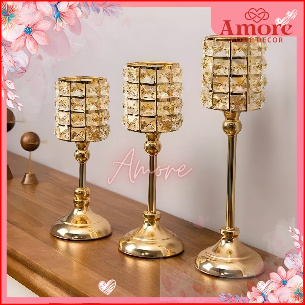 3 Height Crystal Candle Holder Persegi 32cm Tempat Lilin Kristal Premium Home Decor Dekorasi Rumah Import Berkualitas We
