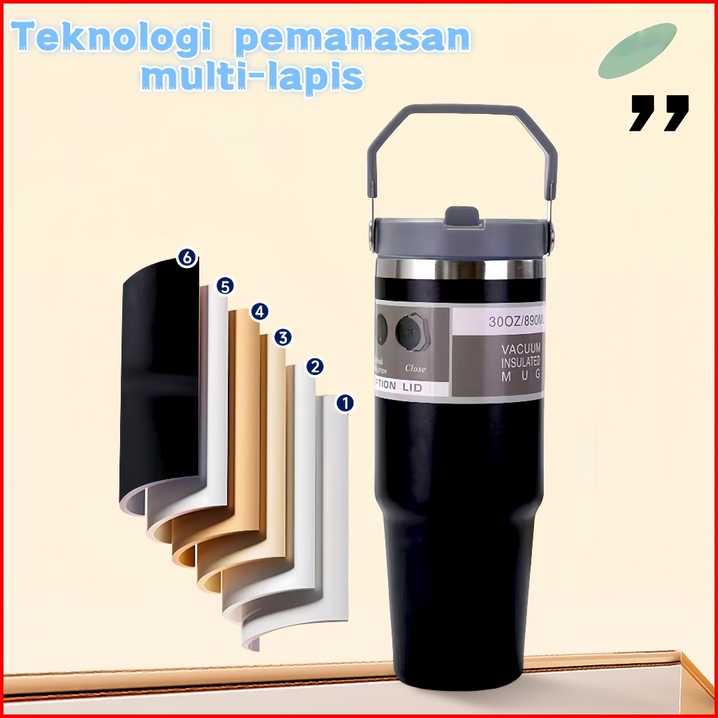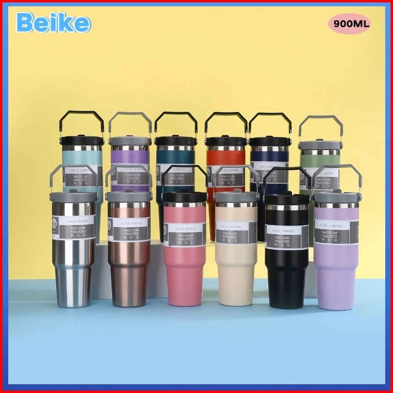 Beike Gelas Kopi Dengan Gagang Bahan Stainless Steel 304 Kualitas Tinggi Kapasitas Besar 900ml Termos Olahraga Gelas Iso