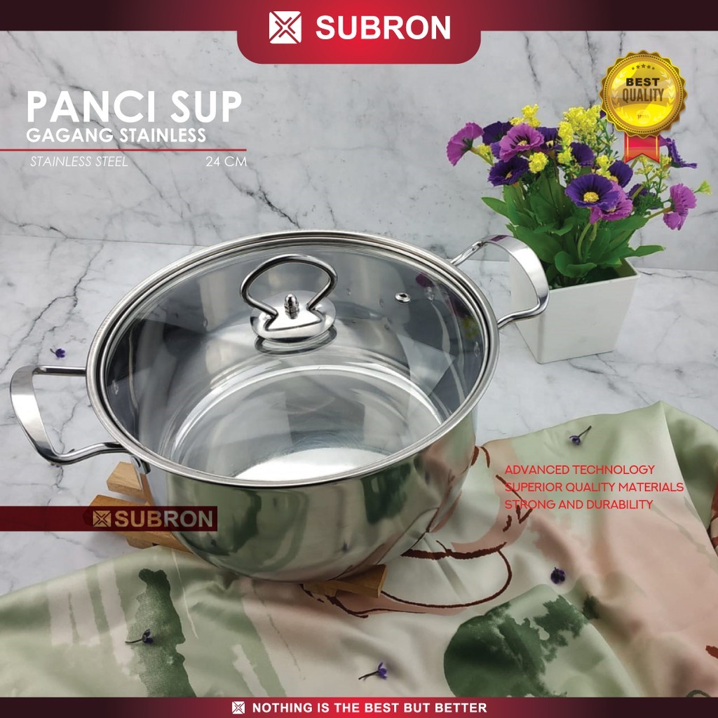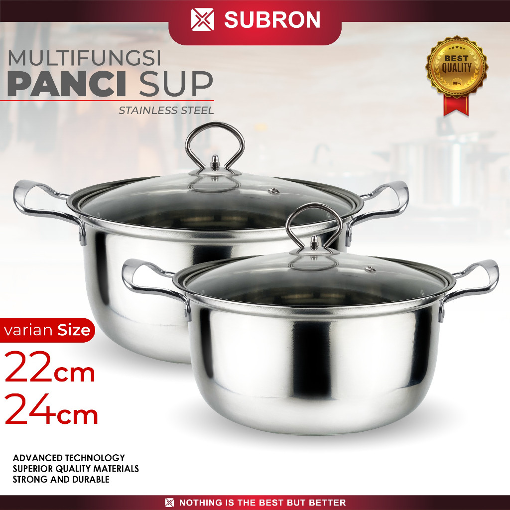 SUBRON Panci Sup Soup Pot 22cm 24cm Stainless Steel Tutup Kaca Gagang stainless BOX