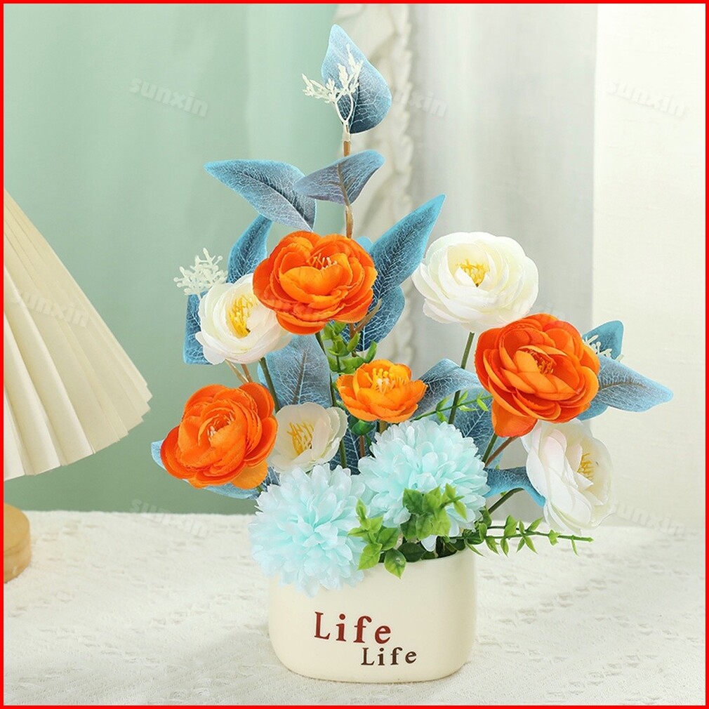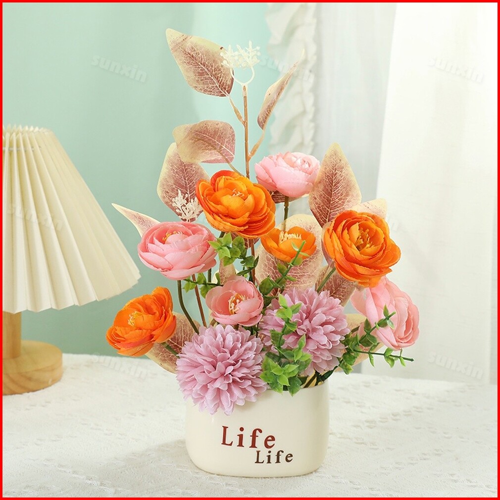 Sunxin Bunga Plastik Dan Pot Bunga Plastik 2 In 1 E20 Vas Bunga Plastik Vas Bunga Aesthetic Vas Bunga Plastikimitasi Bun