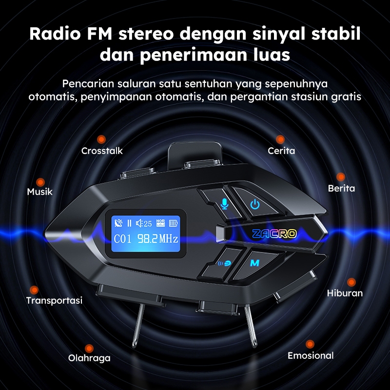 [Mall] intercom helm waterproof intercom helm ZACRO S1 pro Intercom helm Bluetooth 5.4 FM Radio Layar