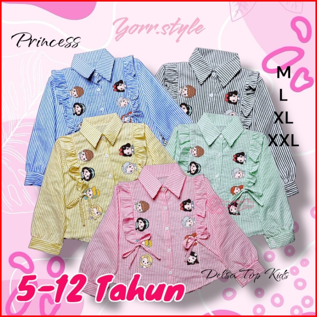 Yorr Style - Mumbee Shirt Kids Delsa Top Kids Princess Sablon Blouse Kemeja Anak Perempuan Salur 5-12 Tahun Poli Katun A