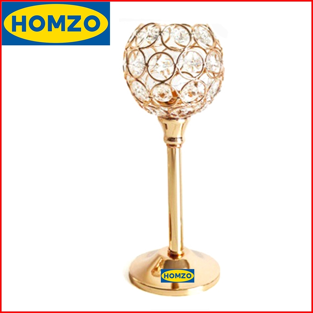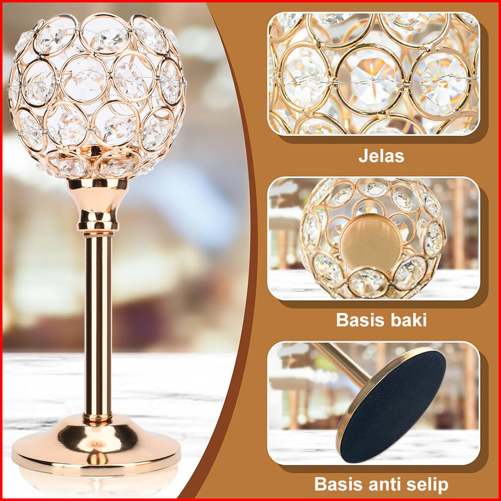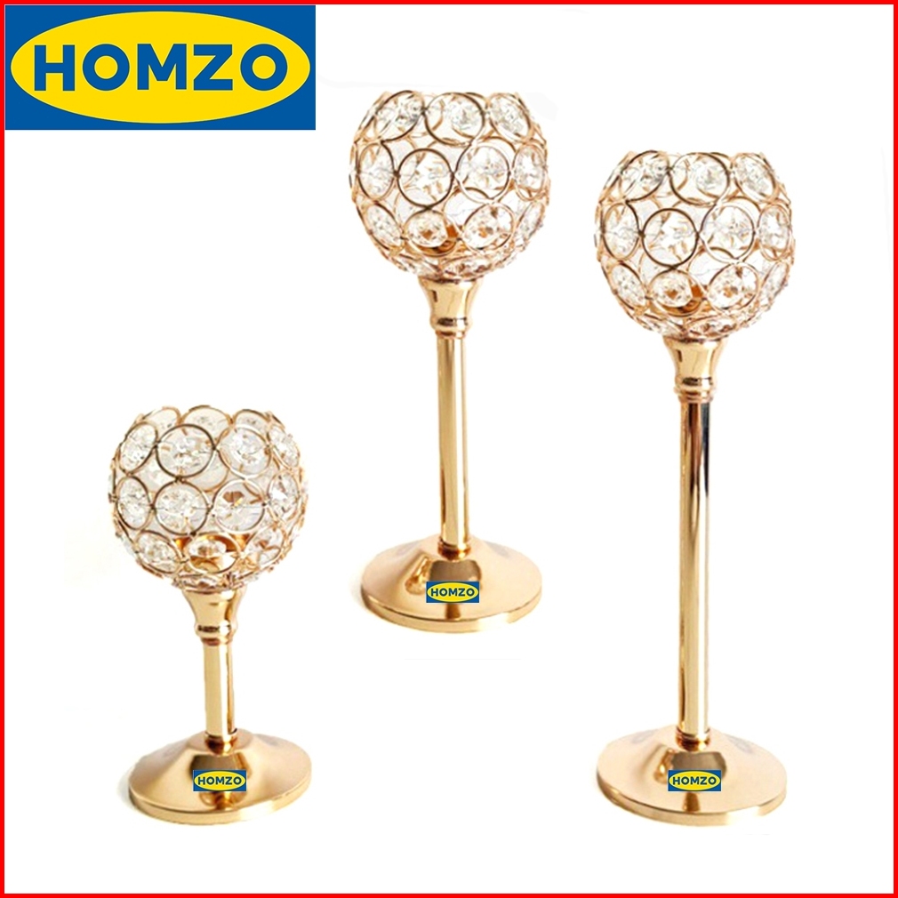 Homzo - 3 Height Crystal Candle Holder 28cm Tempat Lilin Kristal Premium Dekorasi Minimalis Natal Pesta Pernikahan Hiasa