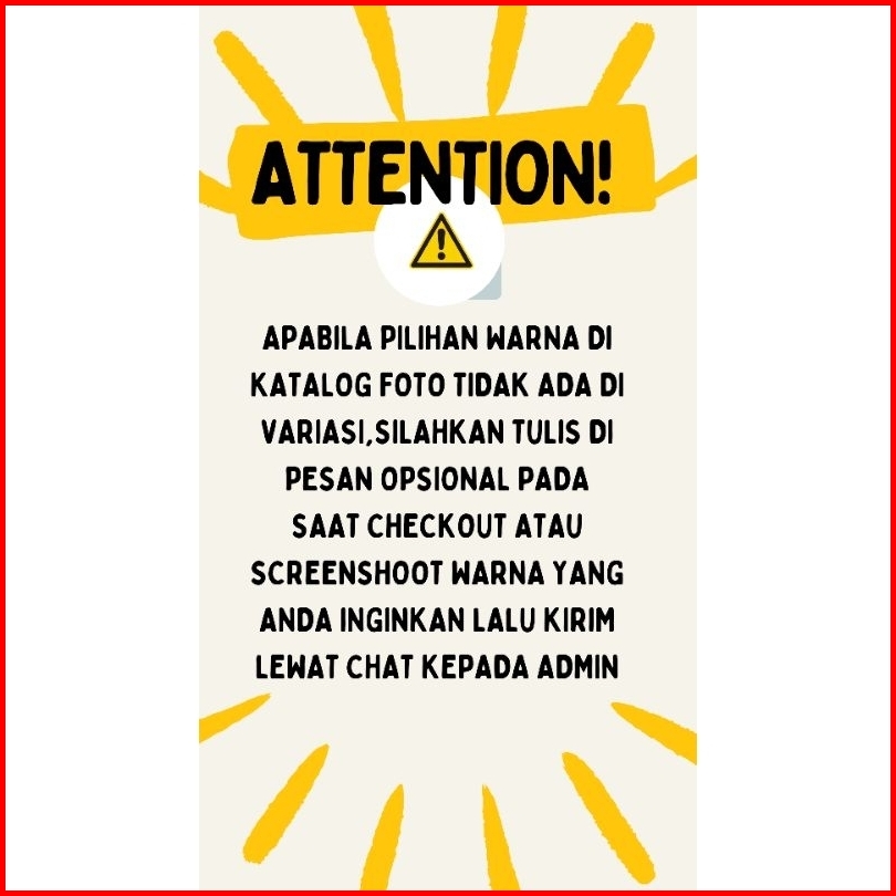 Pink Besar, Putih Besar, Ungu Besar, Coklat Besar, Biru Muda Besar, Hijau Besar, Pink Sedang, putih Sedang, Ungu Sedang, Coklat Sedang, Biru Muda sedang, Hijau Sedang, Hitam besar, Hitam sedang, Cream besar, Cream sedang, Peach besar, Peach sedang, Merah Besar, Merah Sedang, Terakota sedang, Terakota Besar, Orange mangga besar, Navy Besar, Navy Sedang, orange mangga sedang, Burgundi besar, Burgundi sedang, Gold muda besar, Gold muda sedang, Pink Fushia Besar, Pink Fushia Sedang, Biru Denim Besar, BiruDenim Sedang