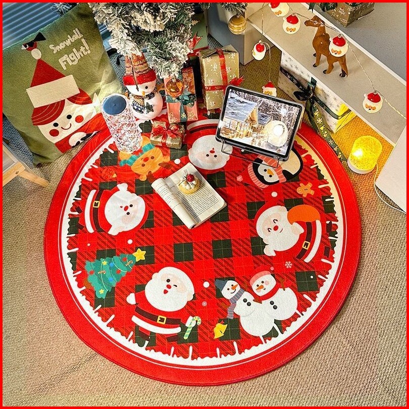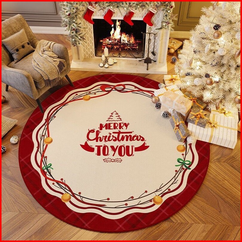 Acc144 Karpet Carpet Lantai Bulat 80cm 80cm Edisi Natal Merry Christmas Anti Slip Anti Licin Keset Hiasan Dekorasi Ruang
