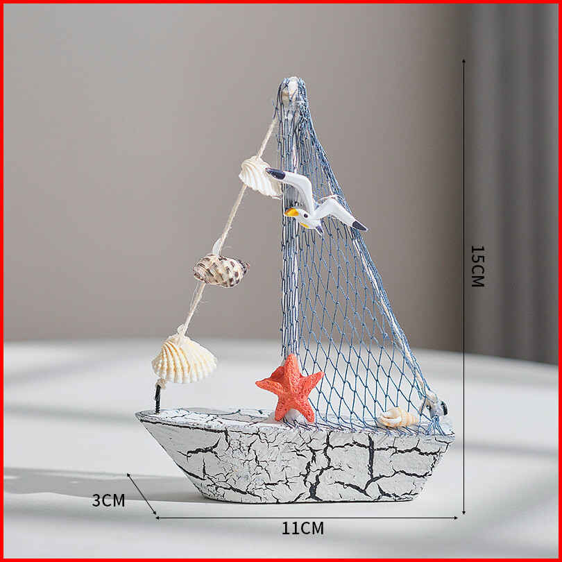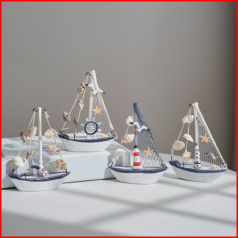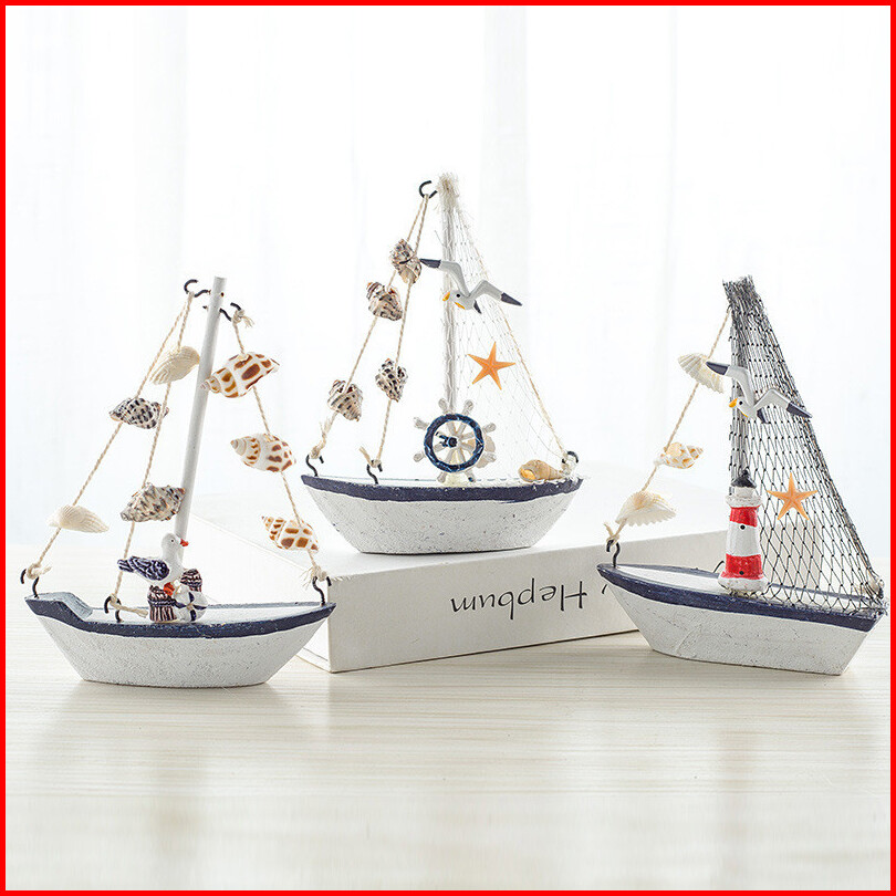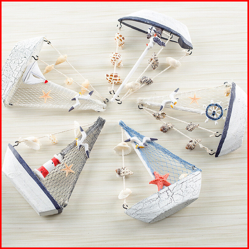 Dekorasi Perahu Kresek Cangkang Gaya Mediterania Model Berlayar Kayu Ornamen Kecil Perahu Kerajinan Kreatif Anak-anak