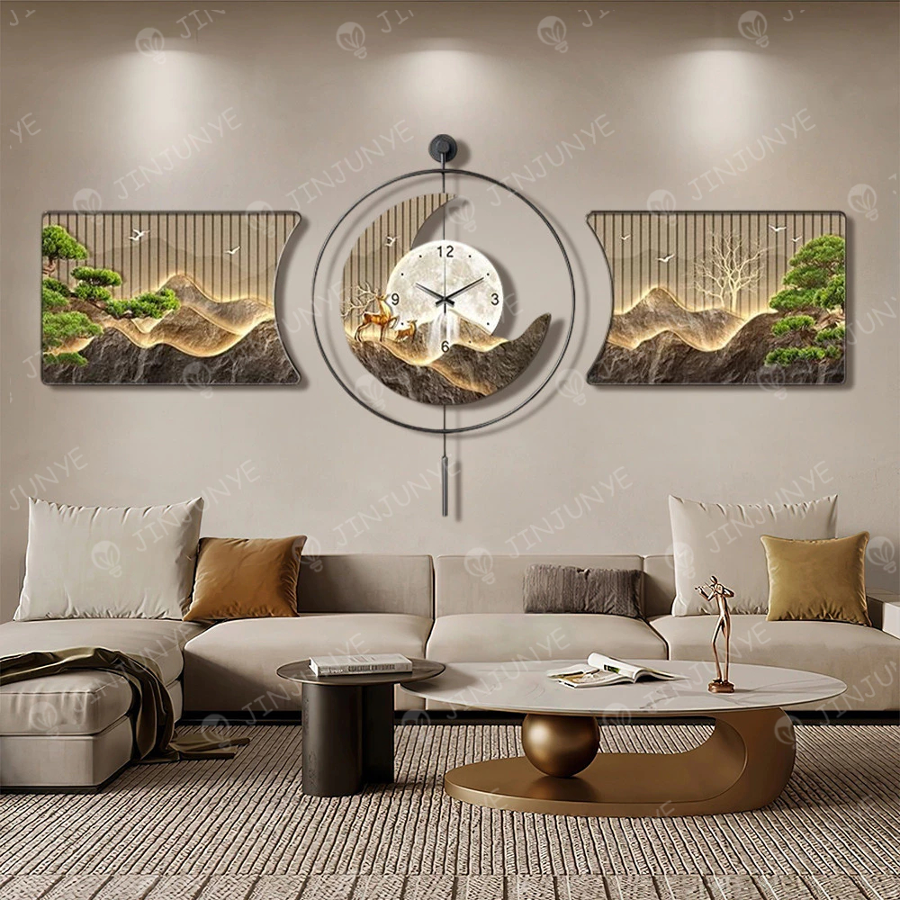 Jam Hiasan Dinding Ruang Tamu Lukisan Krystal Porselin Wall Decor 3pcs/Set Nordic Modern Jam Dinding Ruang Makan koridor TV Sofa Pajangan
