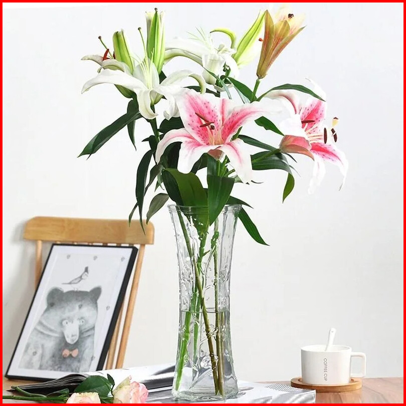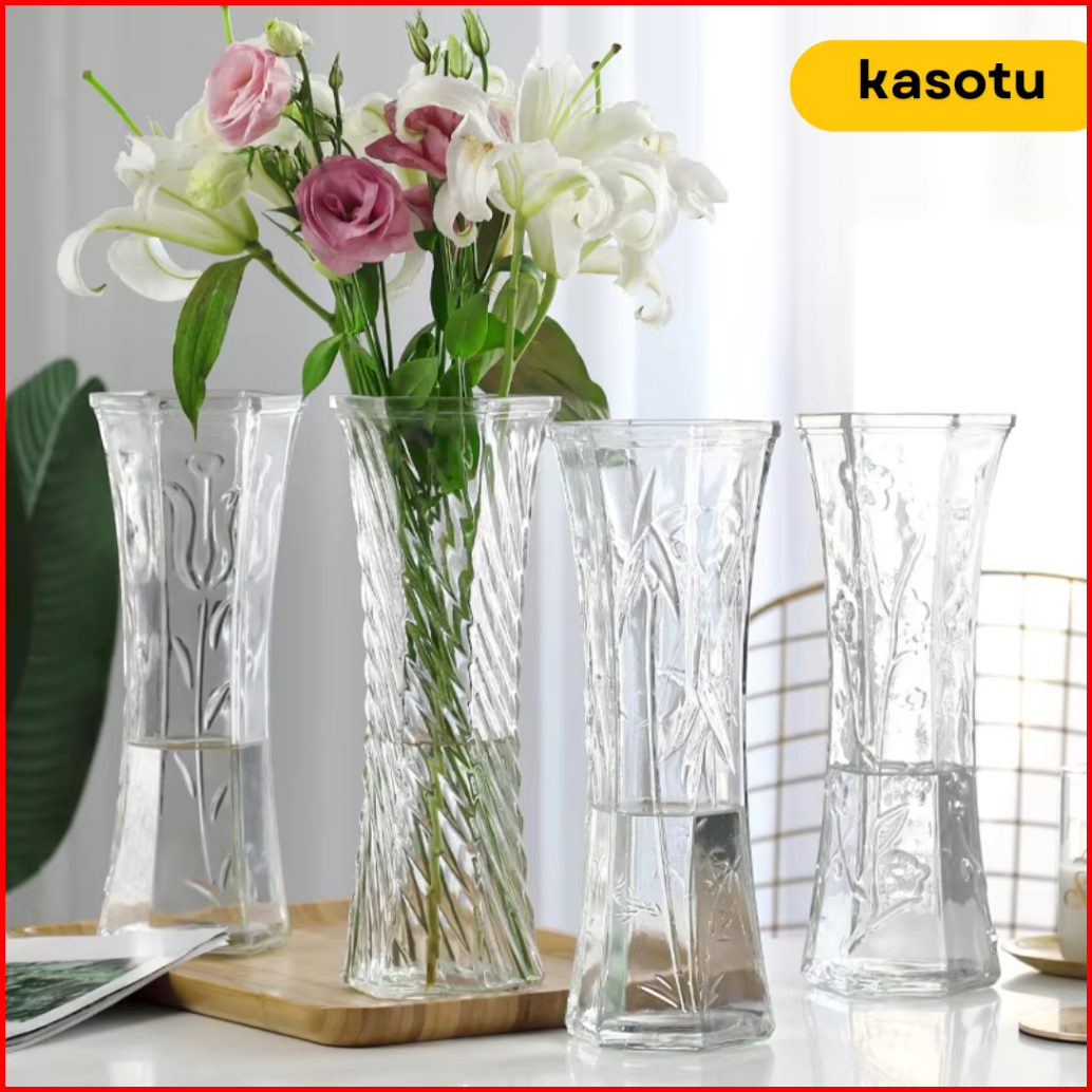 Vas Bunga Aestetic Aesthetic Kaca Bening Ruang Tamu Besar Panjang Estetik Tinggi Artificial Matahari Kering Mawar Hidup