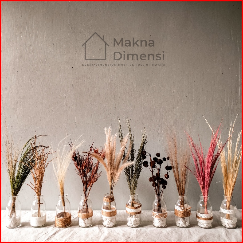 1 Set Bunga Aesthetic Vas Aesthetic Vas Bunga Kering Dried Flower Mini Vase Makna Dimensi