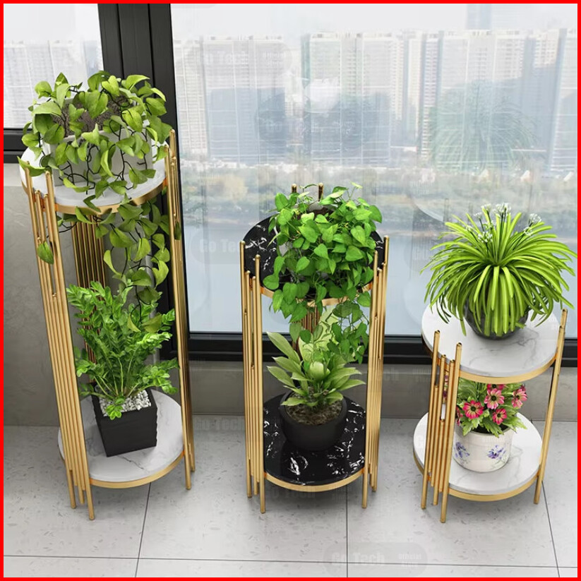 Go Tech - Meja Sudut Standing Flower Cofee Table Meja Sudut Standing Flower Pola Marmer Meja Tamu Shabby Meja Hias Stand