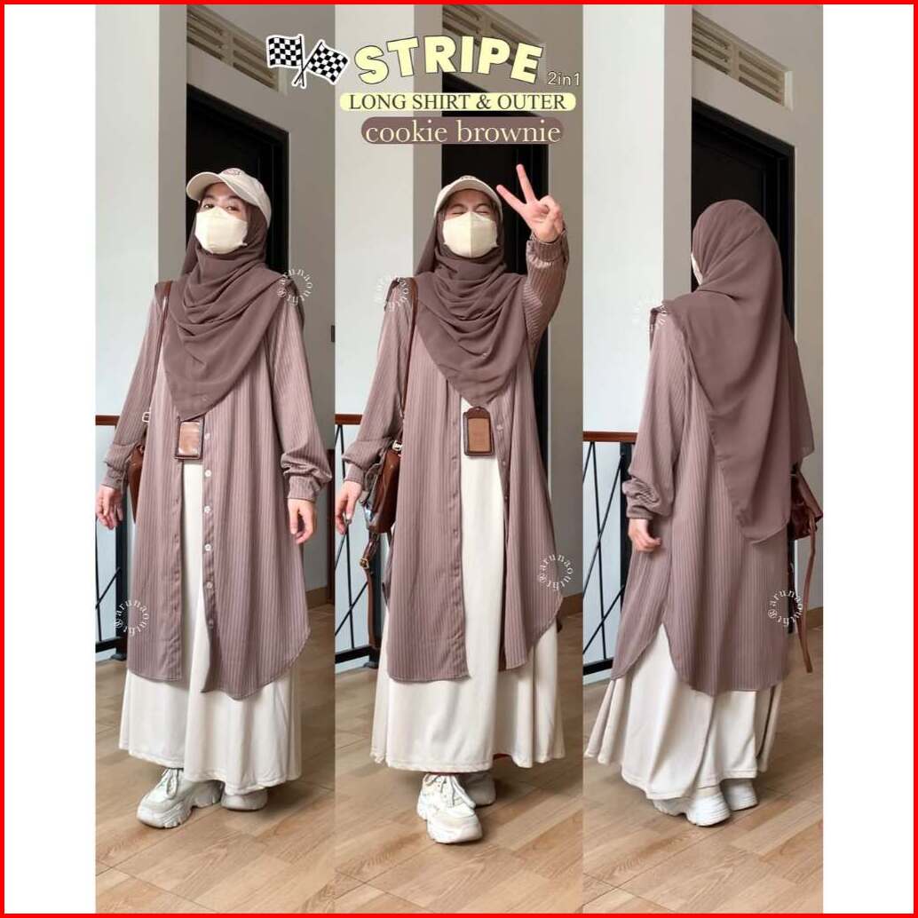 Stripe Long Shirt Outer 2 In 1 By Arunaoutfit Long Tunik Motif Stripe