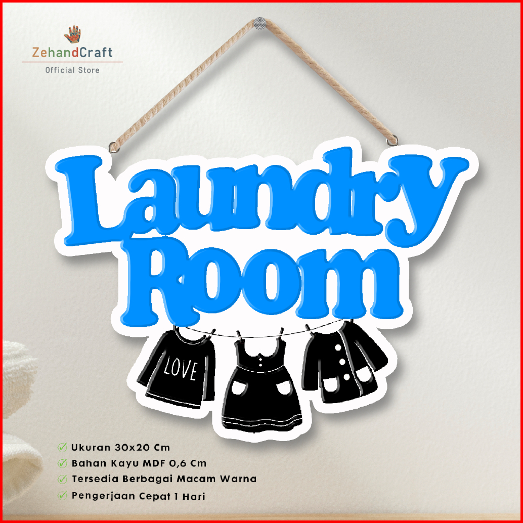 Zehandcraft - Hiasan Dinding Laundry Room Ukiran Kayu 30x20 Cm