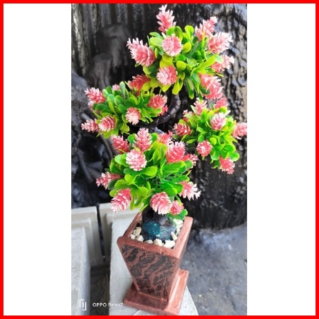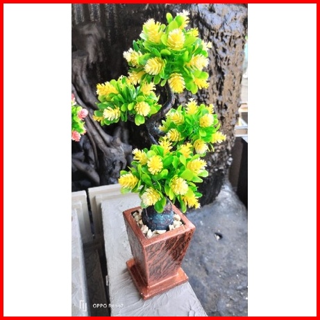 Hiasan Sudut Ruangan Pot Batu Bunga Hias Meja Bonsai Bola Semanggi Pinus Tinggi 30cm