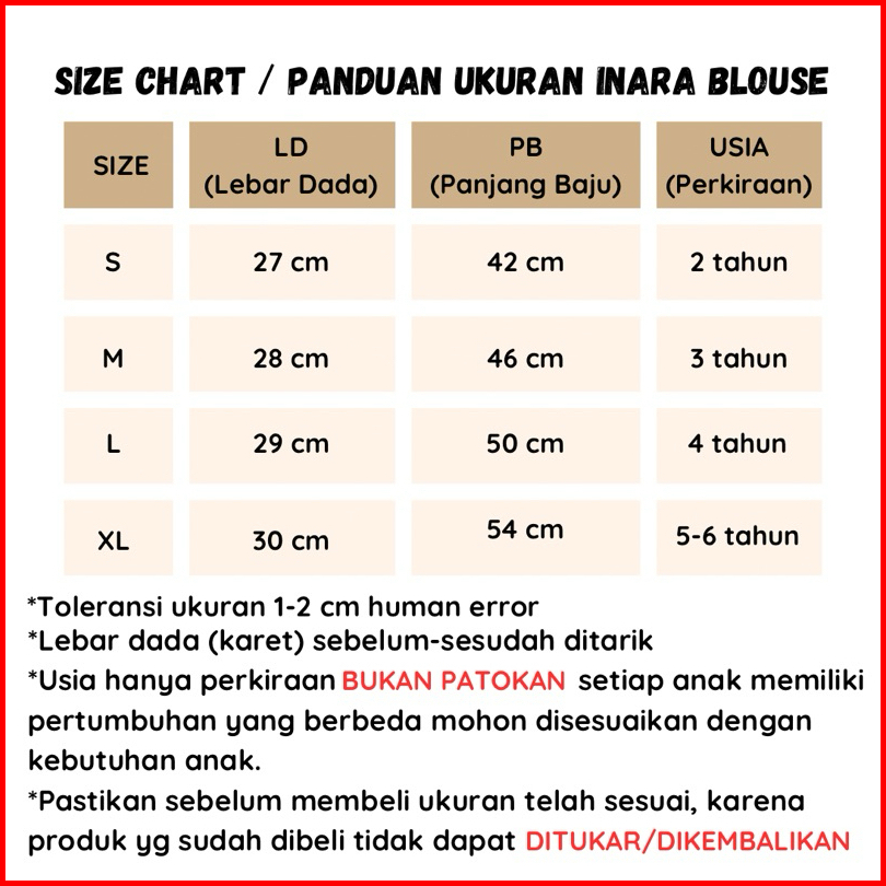Ayesha-inara Baju Atasan Anak Perempuan Shakila Motif 2-6 Tahun Blouse Anak Perempuan Pakaian Anak Perempuan