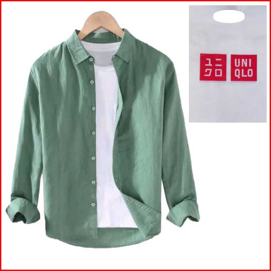 Kemeja Pria Uniqlo Lengan Panjang 100 Katun Shirt Casual Formal Premium