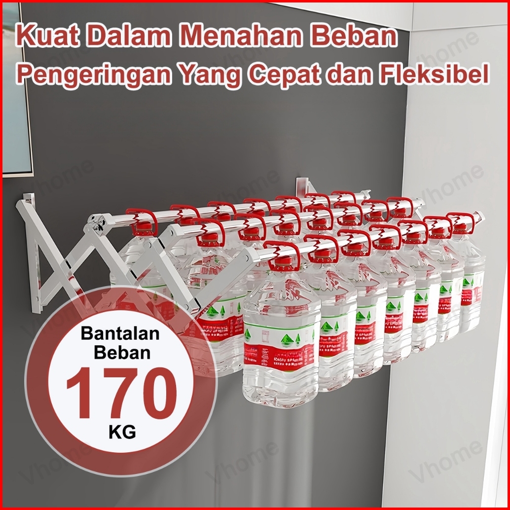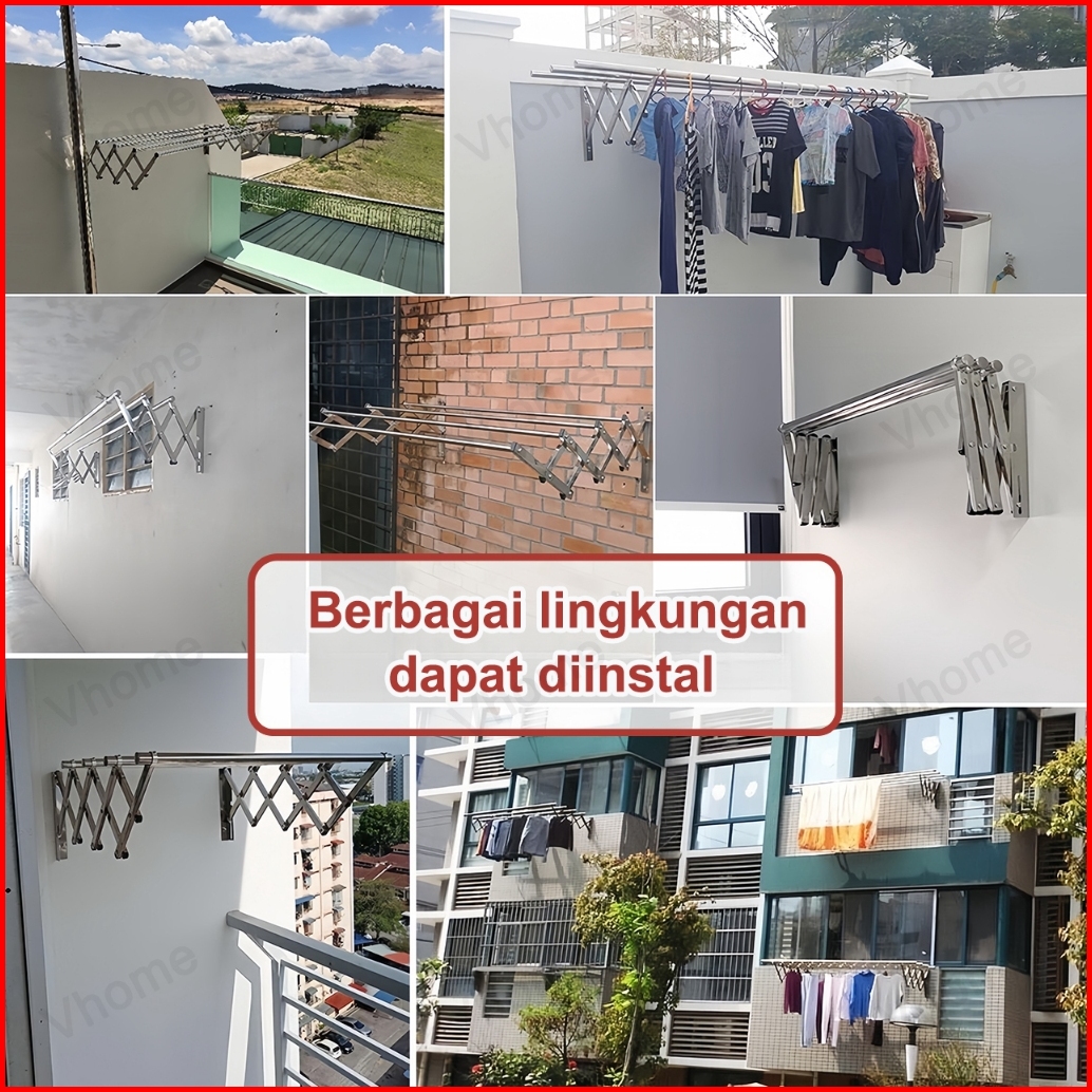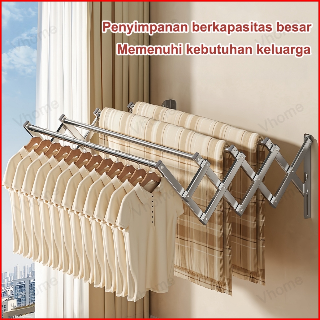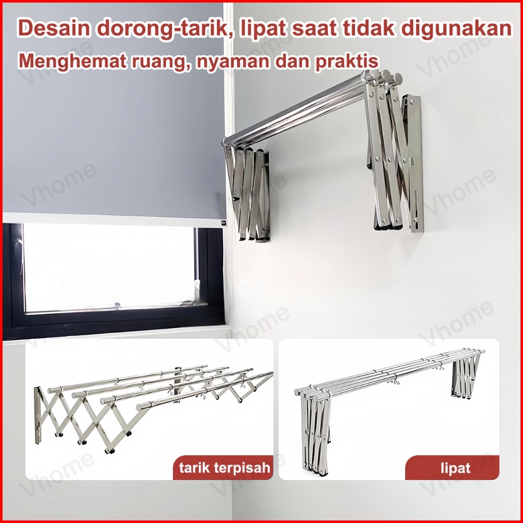 Vhome Jemuran Baju Dinding Stainless Steel Pakaian 3 4 5 Tiang Single Jemuran Lipat Stainless Steel Rak Jemuran 100-200c