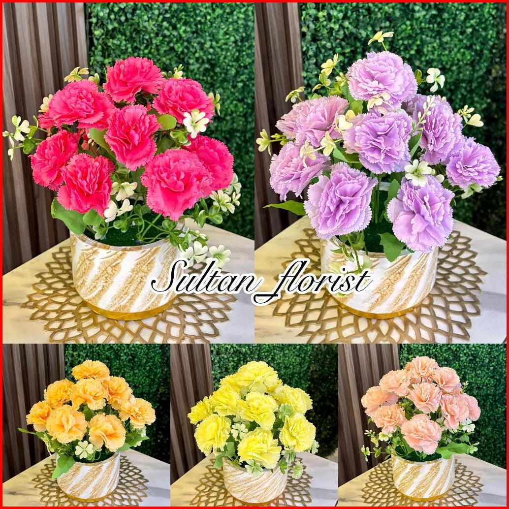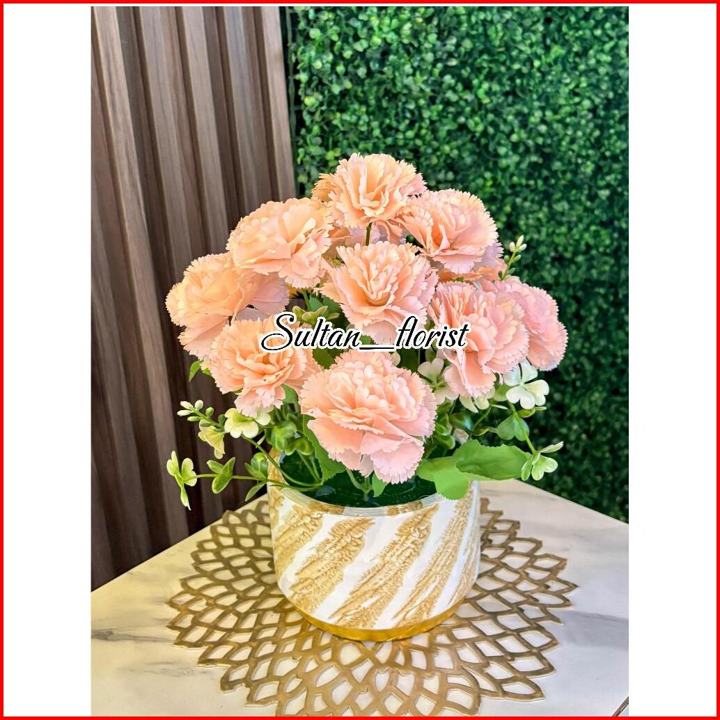 Bunga Hias Anyelir Meja Dekorasi Kain Marble