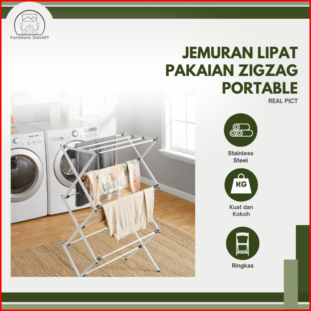 Jemuran Baju Zigzag Rak Handuk Jemuran Zigzag Jemuran Lipat Kuat 15kg