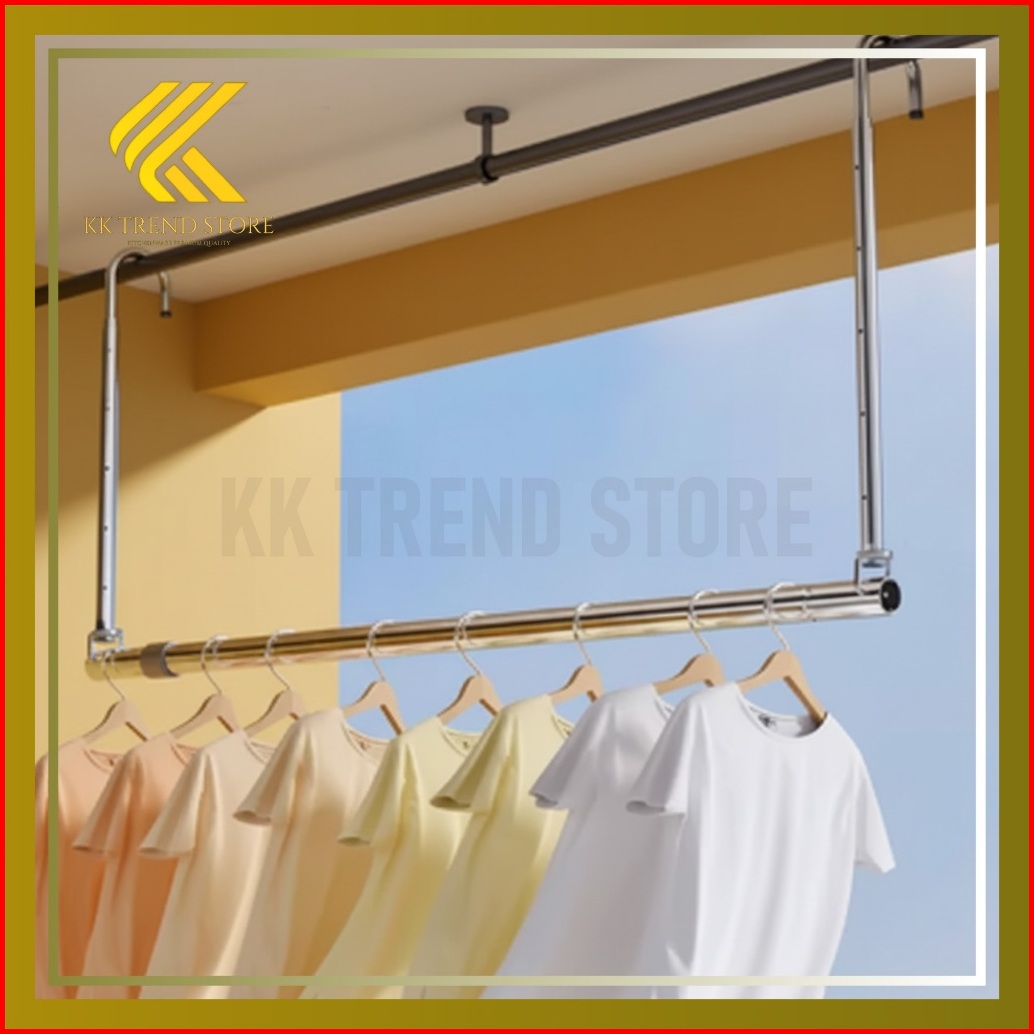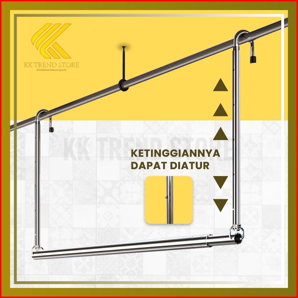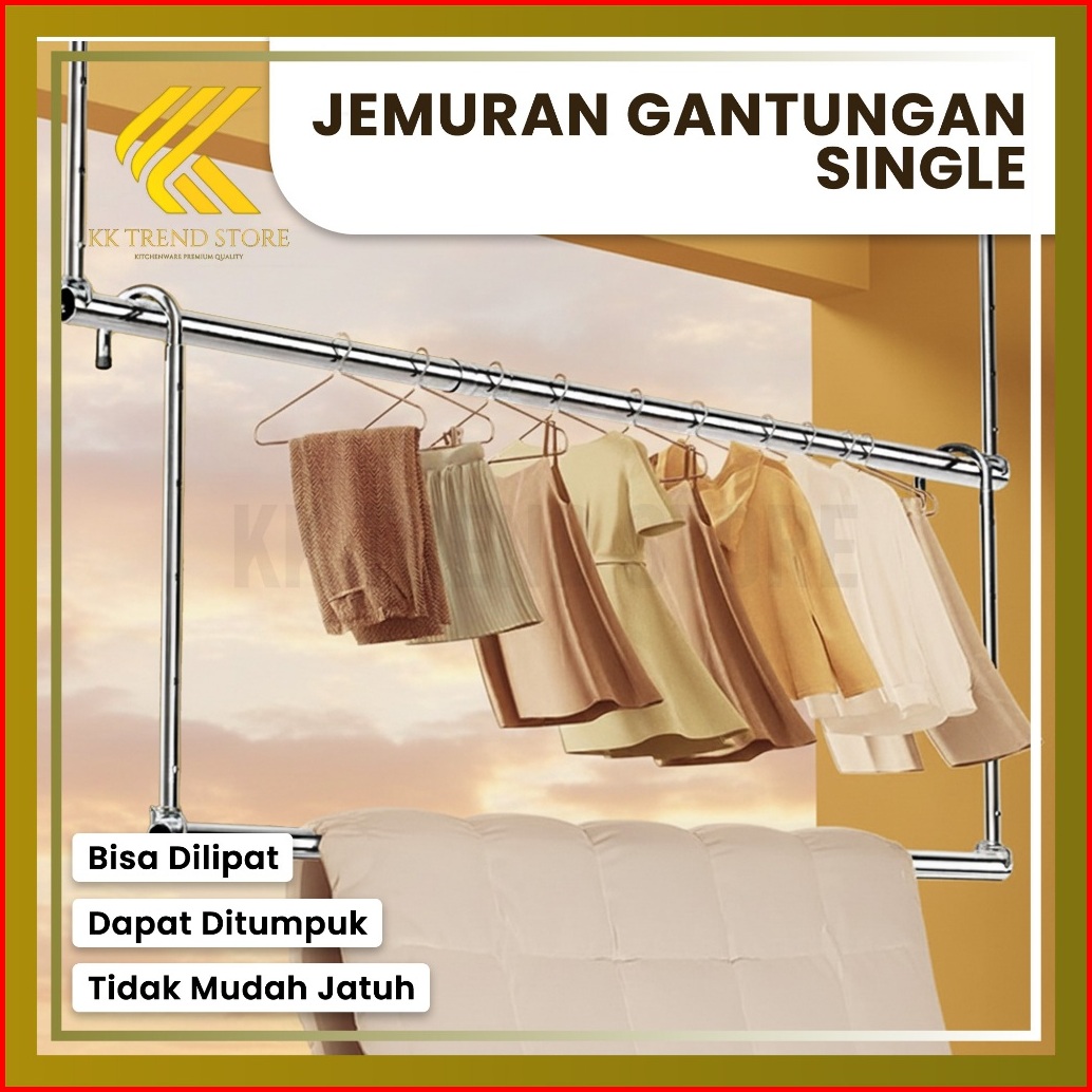 Jemuran Gantung Stainless Lipat Single Bar Untuk Pakaian Handuk