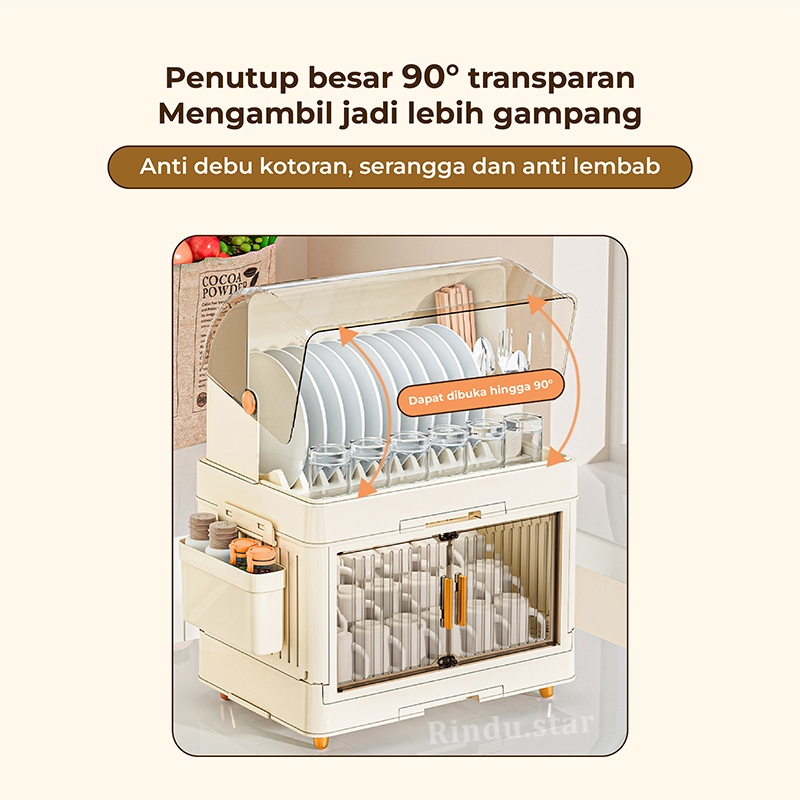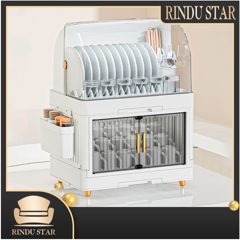 Rindu.Star-Rak Piring Plastik Tertutup Rak Pengering Piring Lipat Rak Cuci Piring Rak Mangkok Dapur