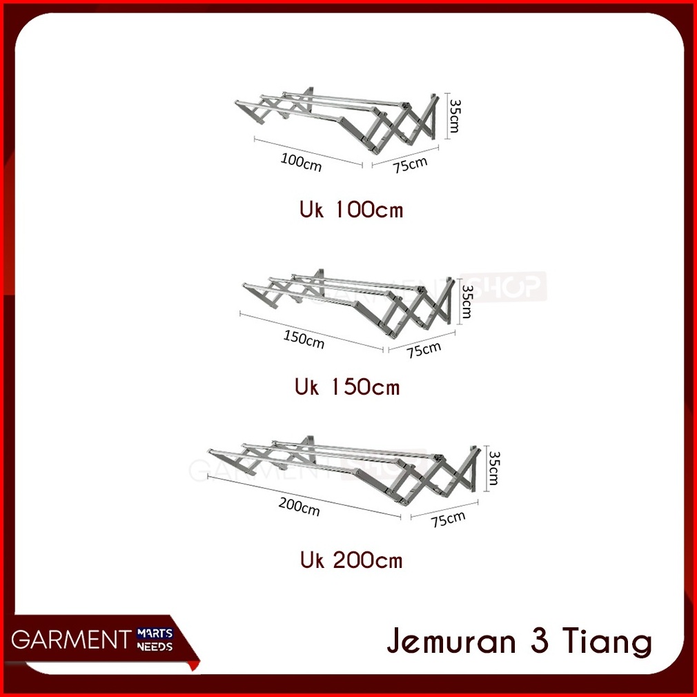 Jemding - Jemuran Baju Dinding Tarik Lipat Rak Jemuran Pakaian Bedcover Multilayer Stainless Steel Anti Karat Minimalis
