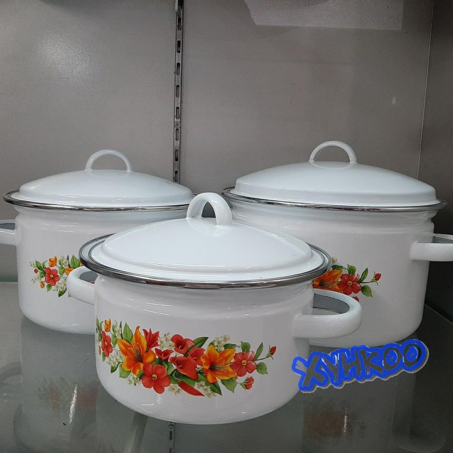 Panci Enamel 16cm 18cm 20cm Jorge Set isi 3 Motif Bunga Kitchenware