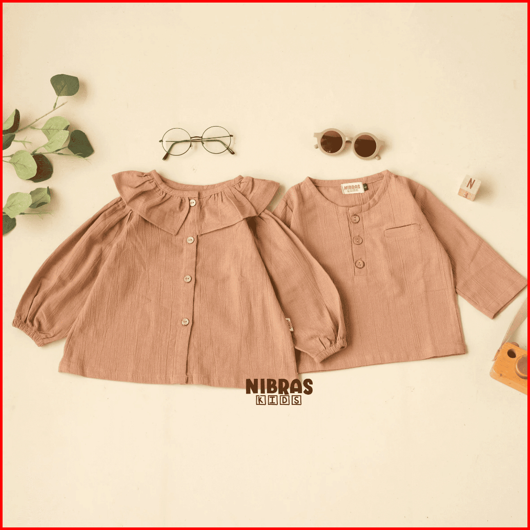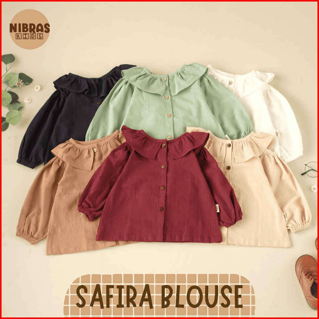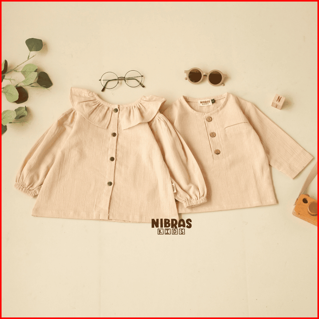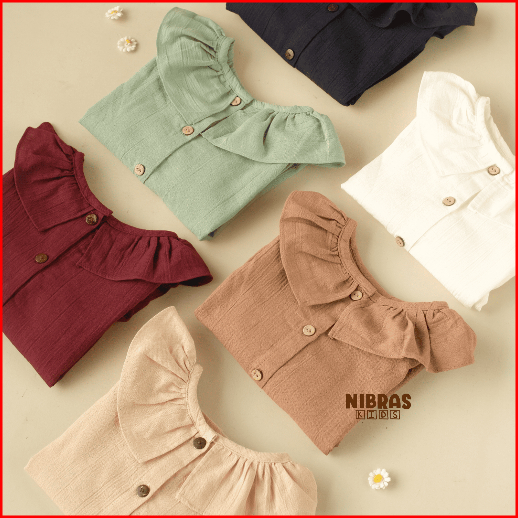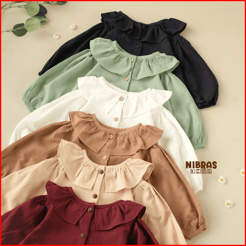 Blouse Anak Perempuan Safira Baju Kemeja Anak Cewek Lengan Panjang Balon Bahan Linen Crinkle 1-6th