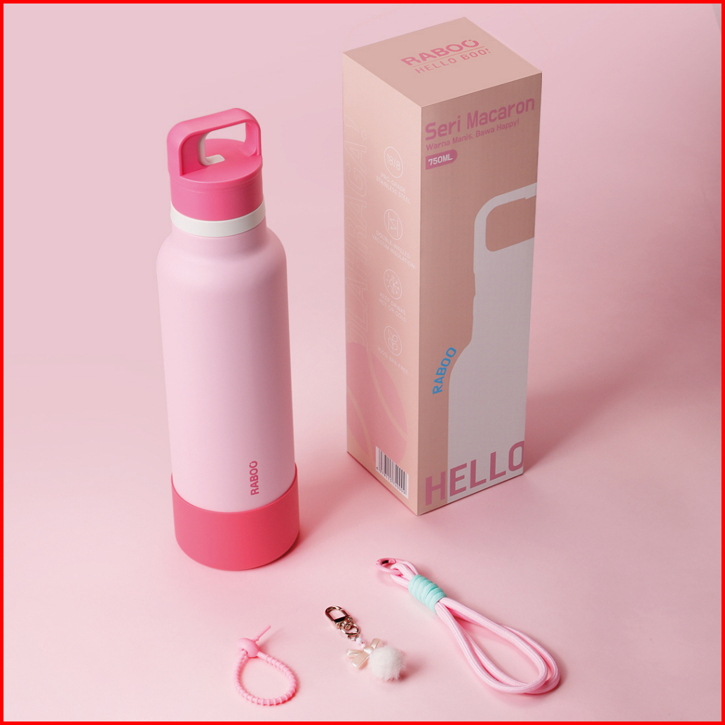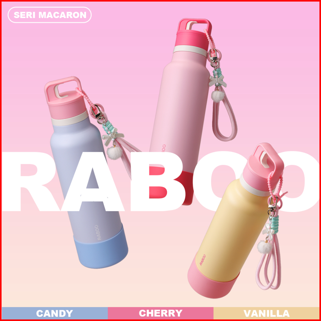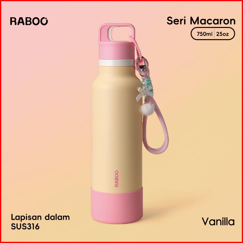 Raboo Tumbler Olahraga Macaron 750ml Satu- Untuk Buka Sus 316 Stainless Botol Termos Trendi Dan Praktis Dibawa - Vanilla