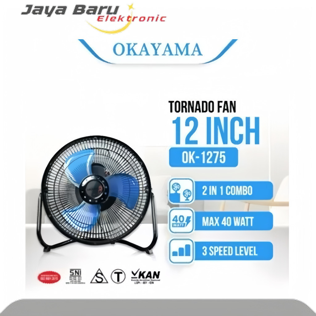 Okayama 12 Inch Kipas Angin Tornado Meja Lantai OK-1275/OK-1075