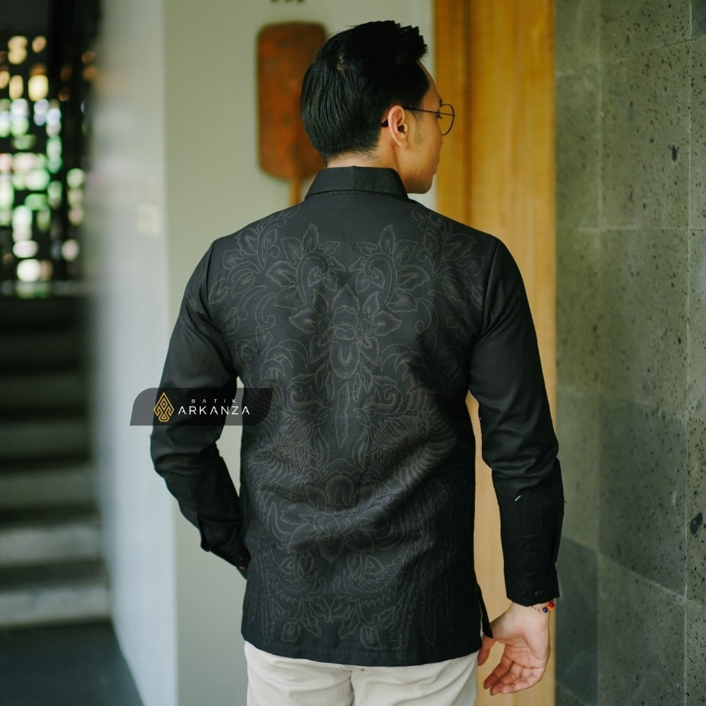 BATIK ARKANZA SOLO Motif Kerta Hitam Baju Batik Premium Lengan Panjang Slimfit Katun Ls Furing