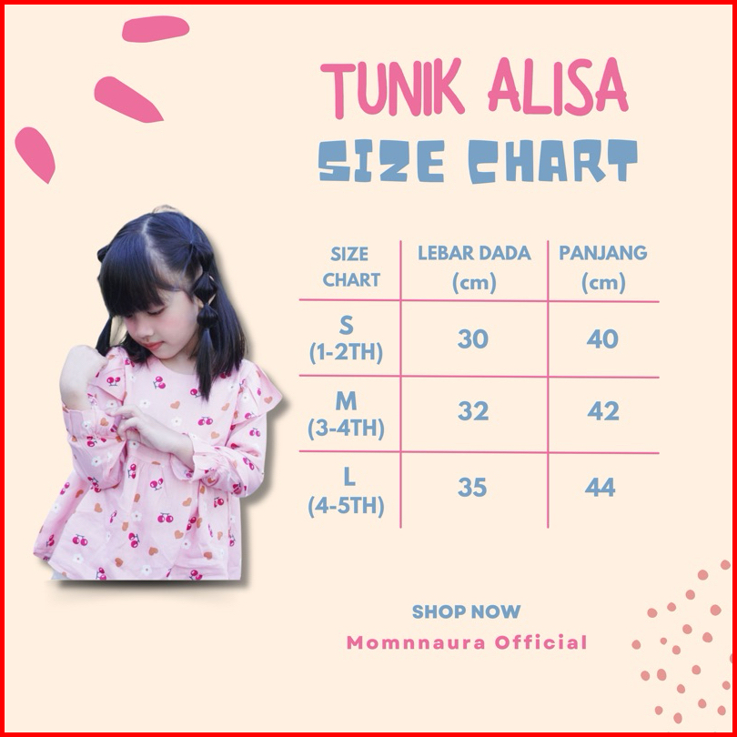 Alisa Top Tunik Anak Tunik Anak Perempuan 1-5tahun Blouse Anak Perempuan